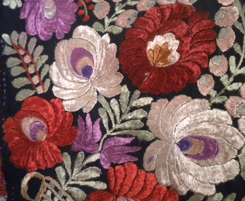Вот еще одна, как мне кажется, интересная шаль того же периода (1920-е). На этот раз из Венгрии. Ручная вышивка шелком по хлопку. Шаль весит около полутора килограмм