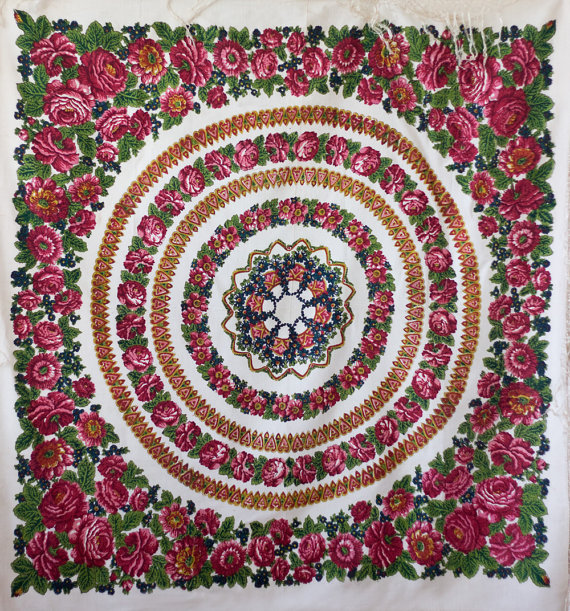 Моя раненая шалечка... Рисунок напечатан на смесовой ткани хлопок+шёлк (вискоза?)