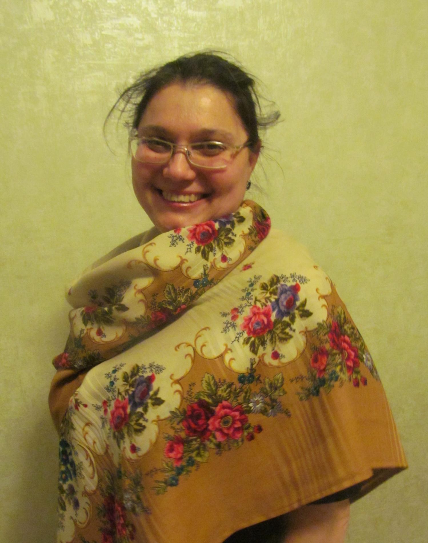Демонстрируем ношение платков и шалей.