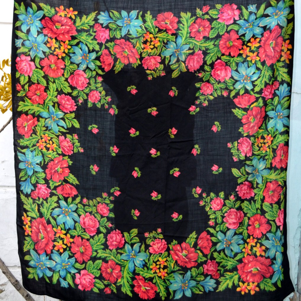 Шаль 150х150 с розами-гигантами в букетах