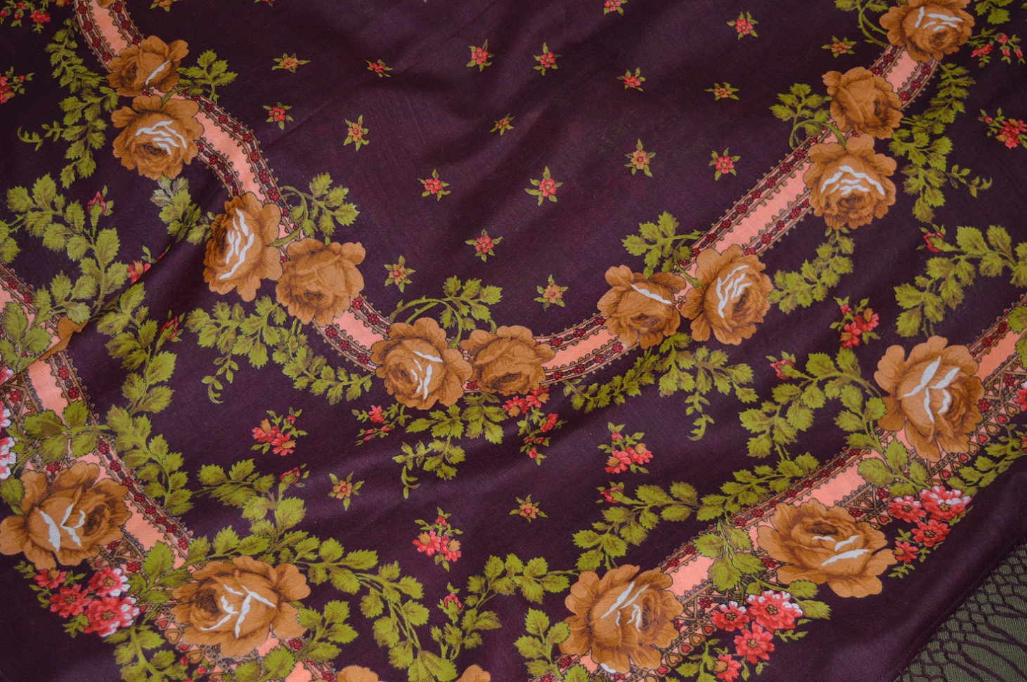 Еще один старинный рисунок Розы и Пионы, восстановлен Виктором Зубрицким. Справа - мое последнее приобретение. Слева - ручная набойка из Марининой коллекции.