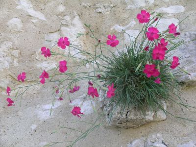 Эти гвоздики растут прямо из стены замка Шато Гайард в Нормандии.