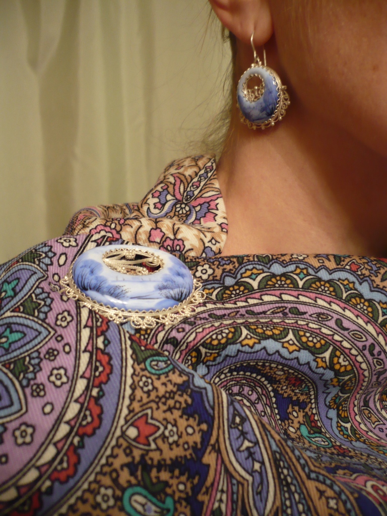 Как будет удачный момент покажусь в примерочной. Дочка сказала : "Мама ,ты зимушка-зима теперь" :lol:. Спасибо за отзывы. Дужки медь покрытая серебром. Не знаю как носиться будет,но если что заменю, не проблема. Хотя есть финифить полностью в оправе -серебре :-)