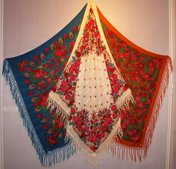 Вот еще нашла "парочку". Форумчанка busel показала платок из музея города Ухта Республики Коми. Это другой колорит александровского платка из коллекции Стахеевых, показанного Sveta.