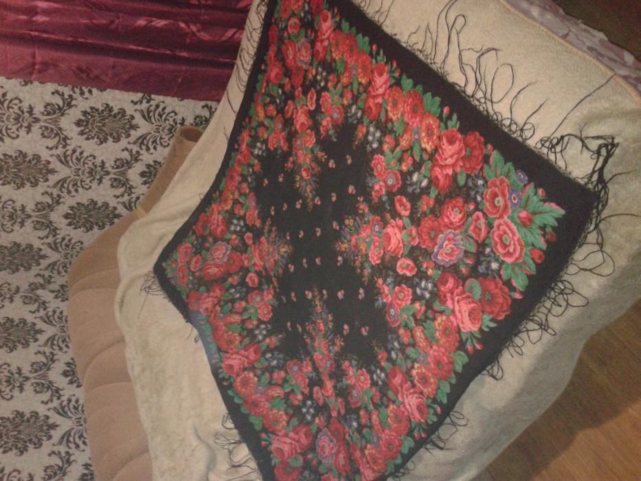 Этот платок я обнаружила в разделе "Мир русской деревни". Тоже очень старинный, судя по состоянию глубокой винтажности.