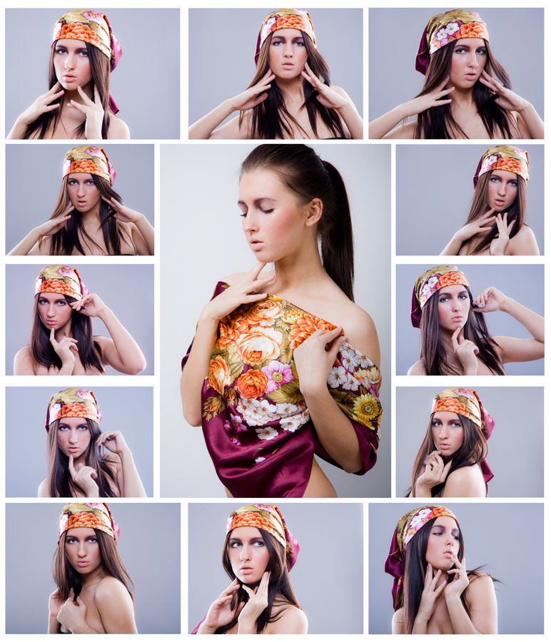 М..да, слов нет, Было бы интересней и полезней, если бы на переферийных картинках модель демонстрировала способы повязывания этого платка и делала бы это с душой, как многие наши форумчанки на форуме и в конкурсе, или надо было оставить только центральный снимок.