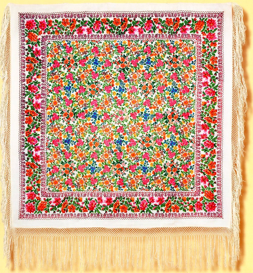 Шаль 150х150 с орнаментально-цветочным узором по кайме с "ситцевым" вариативным средником