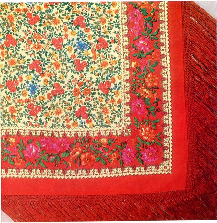 Шаль 156х152 с орнаментальной восточной каймой. Печать 1950-х гг._Галереи художников