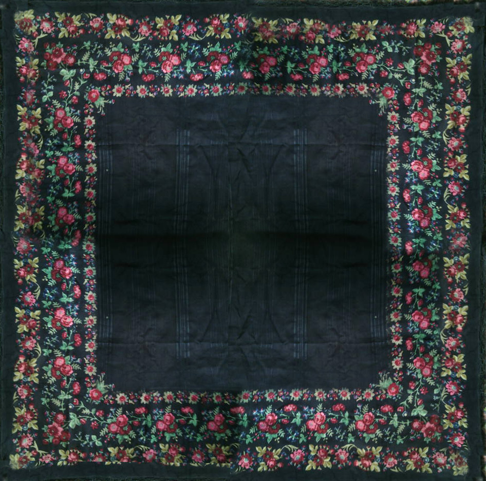 Шаль 150х150 с тройной цветочной каймой, старинная