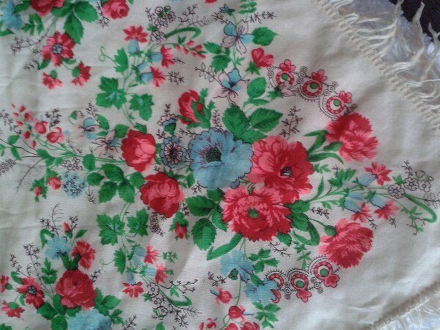 Самый изящный рисунок на этом платке, который я когда-либо видела на старинках ППП (шерсть, 145х145см)