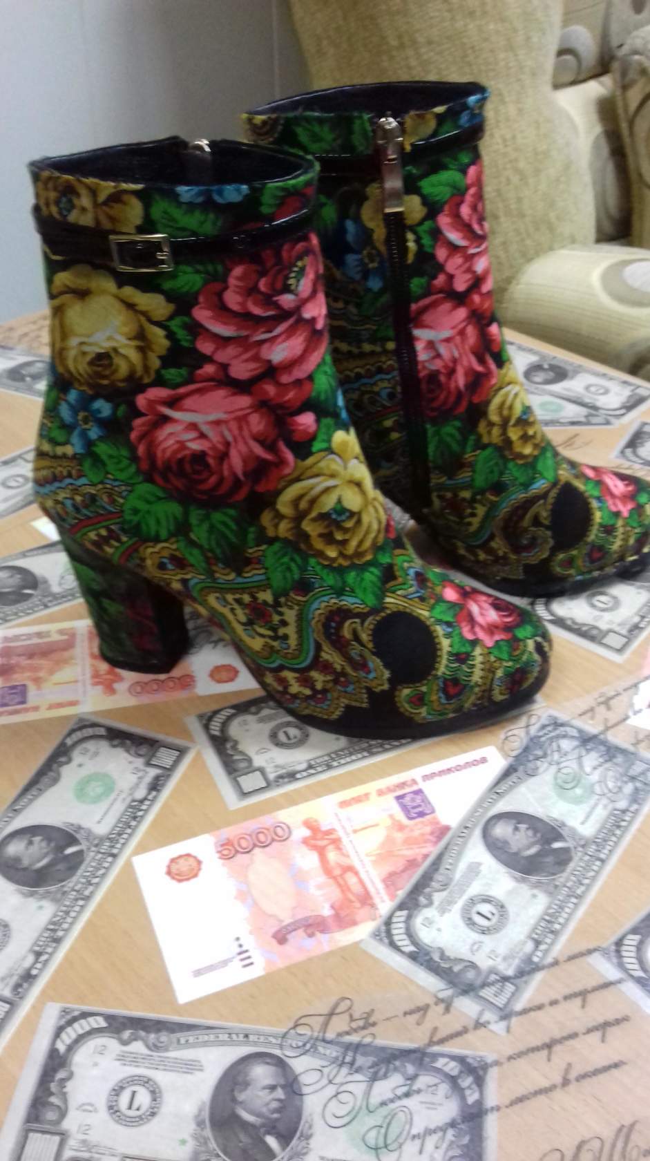 ....и еще одна - моя любимая. Это лично мои полусапожки.....были просто черный замш,два года их носила,а потом превратили их в такую красоту...Все это делает мой муж.....)))