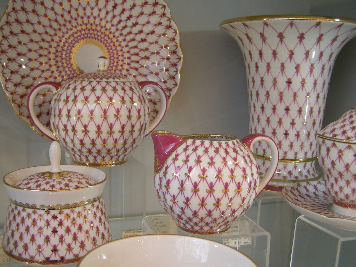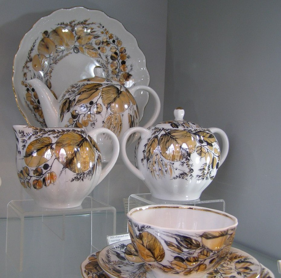 Художница Анна Яцкевич, автор знаменитого синего логотипа ЛФЗ, расписала сеточкой сервиз