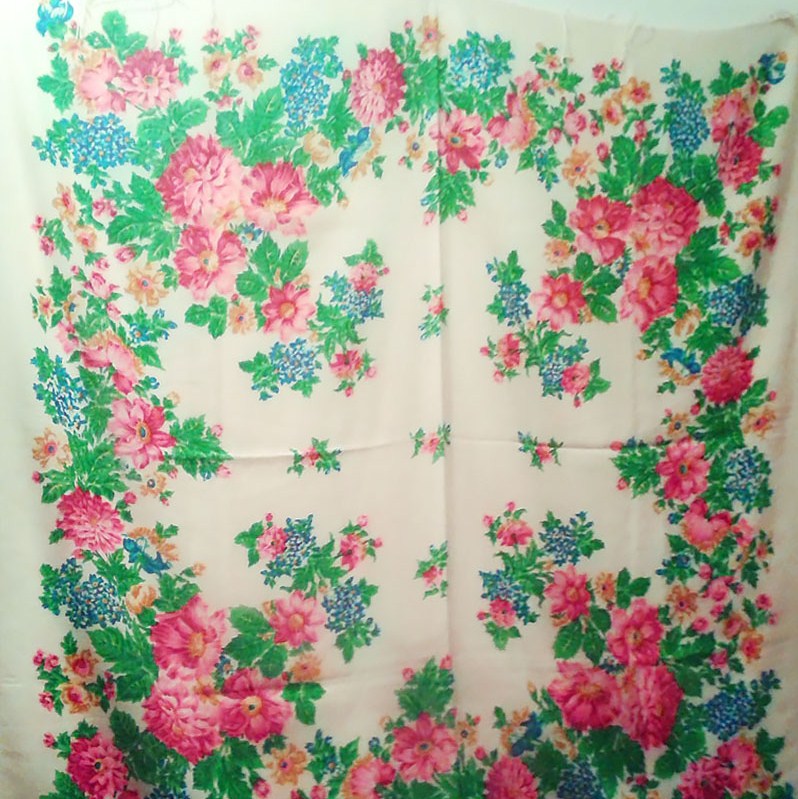"В 1965 году на фабрике имени Х годовщины Красной Армии способом фотофильмпечати выпускали платок Рыжова "Четыре праздника": черный грунт, четыре угла, в каждом разные цветы - маки, георгины, розы и сирень" ( А. Коновалов. Плат узорный. М. 1981, с.104).