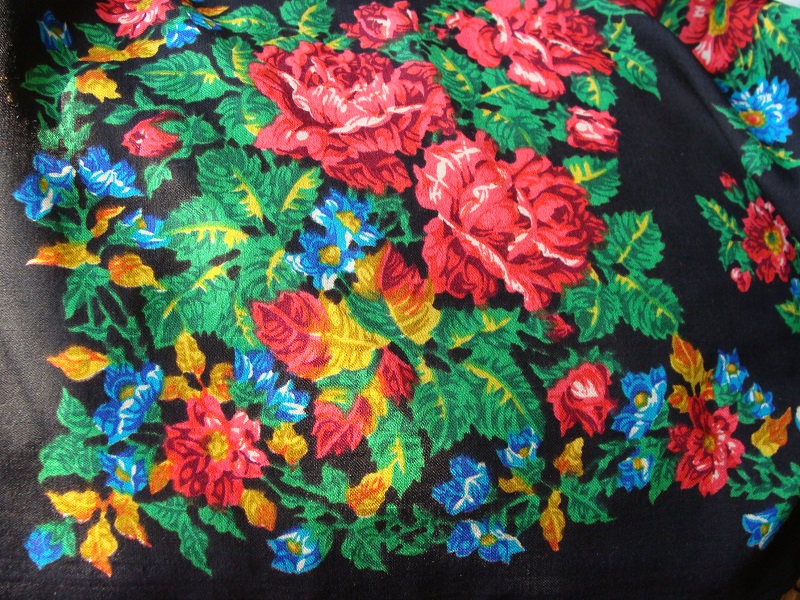 Шерстяной платок, напечатанный по рисунку крока БУКЕТ с хризантемами Вариант рисунка БУКЕТ с изменениями