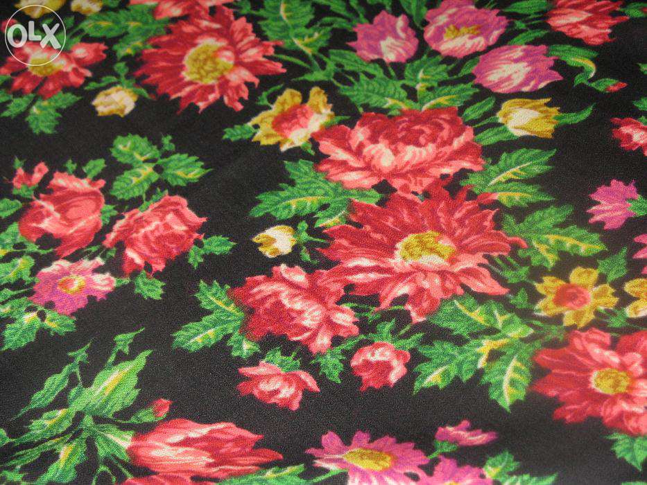Шаль 150х150, концентрические ромашковые круги с тюльпанами в букетах