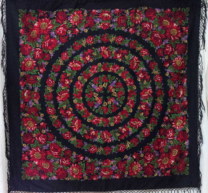 Моя раненая шалечка... Рисунок напечатан на смесовой ткани хлопок+шёлк (вискоза?)