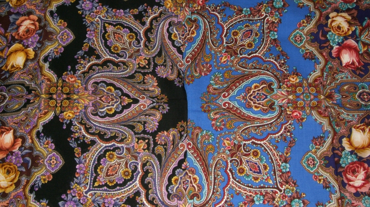 По-моему, мандрагора не цветет? Но рисунок на шалях\платках,ведь, немножко сказка? Аллегория? Абстракция...И мне показалось, подумалось, что под розовой и чайной розочками, головкой к краю каймы, девятилепестковый, с голубенькой серединкой (см. нижнее фото - там крупнее) - это он и есть!