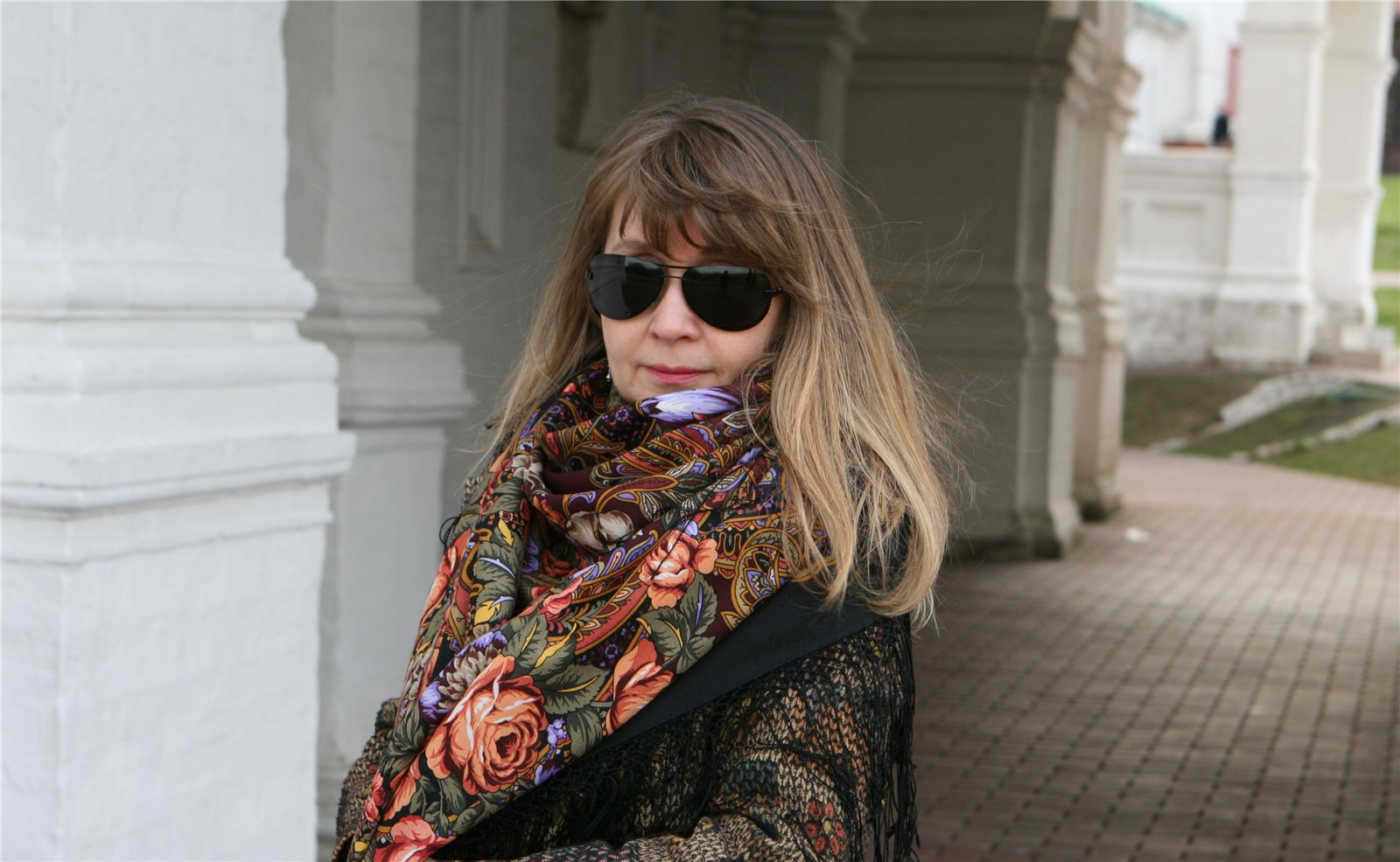 Демонстрируем ношение платков и шалей.