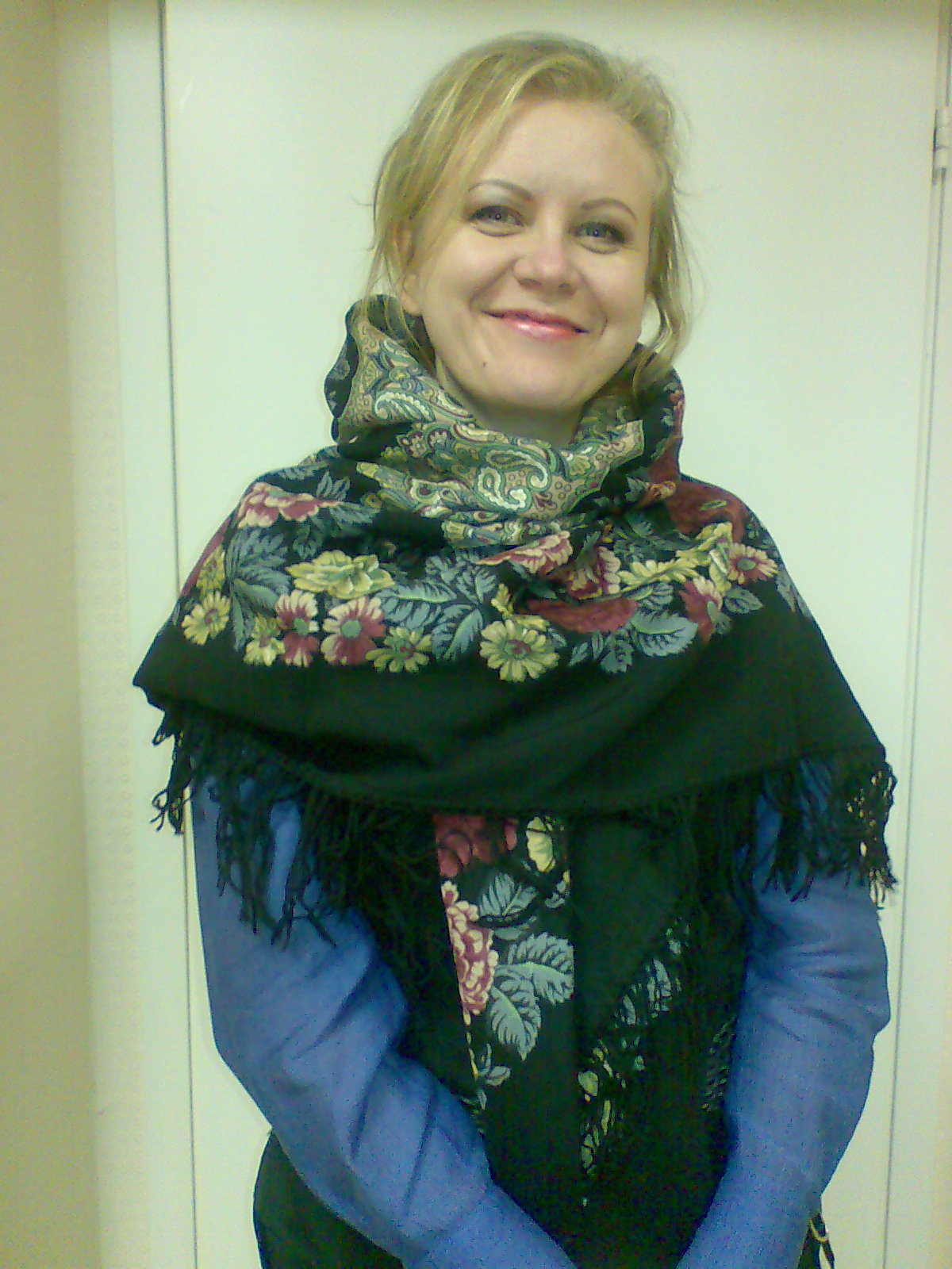 Капитолина, вам очень хорошо в шалях!!! Красная Сельби - великолепна на вас ^% , густой насыщенный цвет волос подчеркивает глубокий красный цвет шали, а шаль, в свою очередь, подчеркивает красоту волос и цвет глаз (Кликните, чтобы почитать, что спрятано под катом)..., вам идут и красные и голубые платки, а Шафран создает очень гармоничный и благородный образ ^% Мне очень понравилось :)