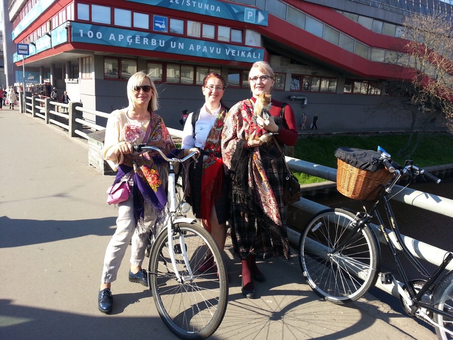 Велосипеды были в порядке, костюмы тоже, и как же без наших шалей и платков. Погода нас сегодня баловала - солнечно, тепло, лёгкий ветерок, который не мешает езде на велосипеде.