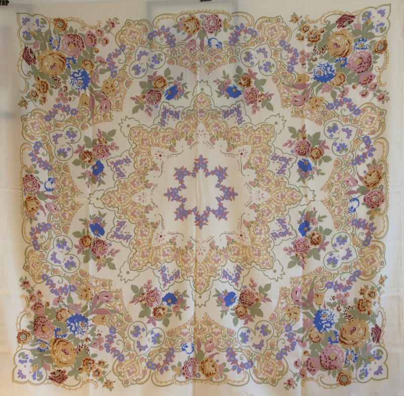 На этикетке значится 3-й сорт,размер 150, цена 1100 руб! бахрома была шелковая (эти мышиные хвостики я сняла пока моя электричка мчалась от Тулы до Мценска... за 1,5 часа.. (Кликните, чтобы почитать, что спрятано под катом)...)прошу прошения, что не выглажена, и вверху просвечивает черная фоторамка..