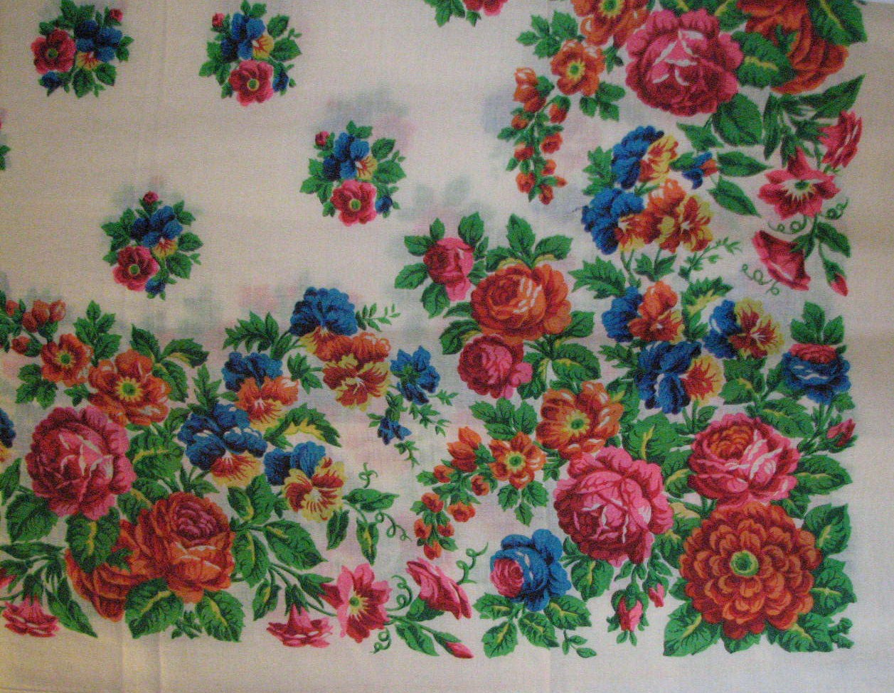 Шаль 146х146 с букетами тюльпанов и ягодами малины по кайме_Экспертиза 15.11.15