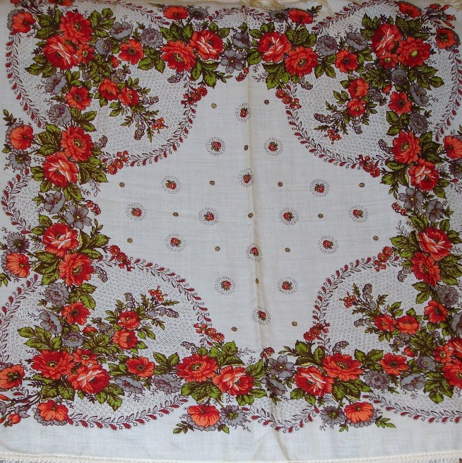 Шаль 150х150 с травчатыми крупными букетами_ Автор Е.П. Регунова. Экспертиза 15.11.15