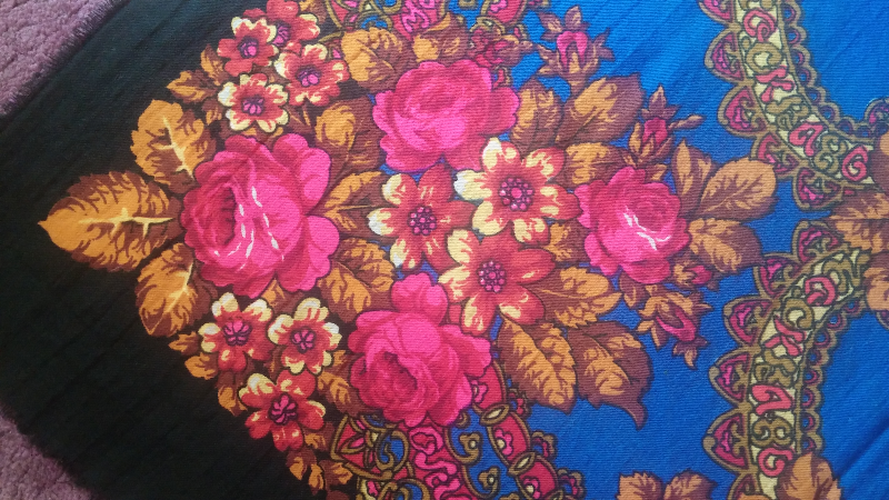 Шаль 146х146 с букетами тюльпанов и ягодами малины по кайме_Экспертиза 15.11.15