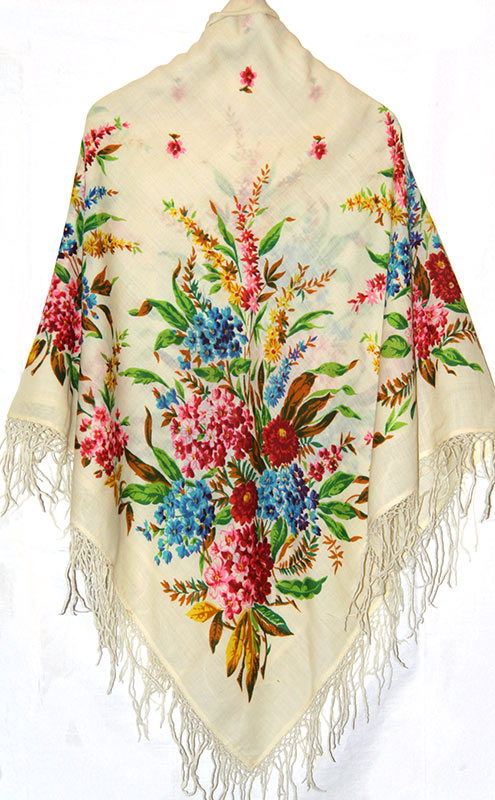 Шаль 150х150 с травчатыми крупными букетами_ Автор Е.П. Регунова. Экспертиза 15.11.15