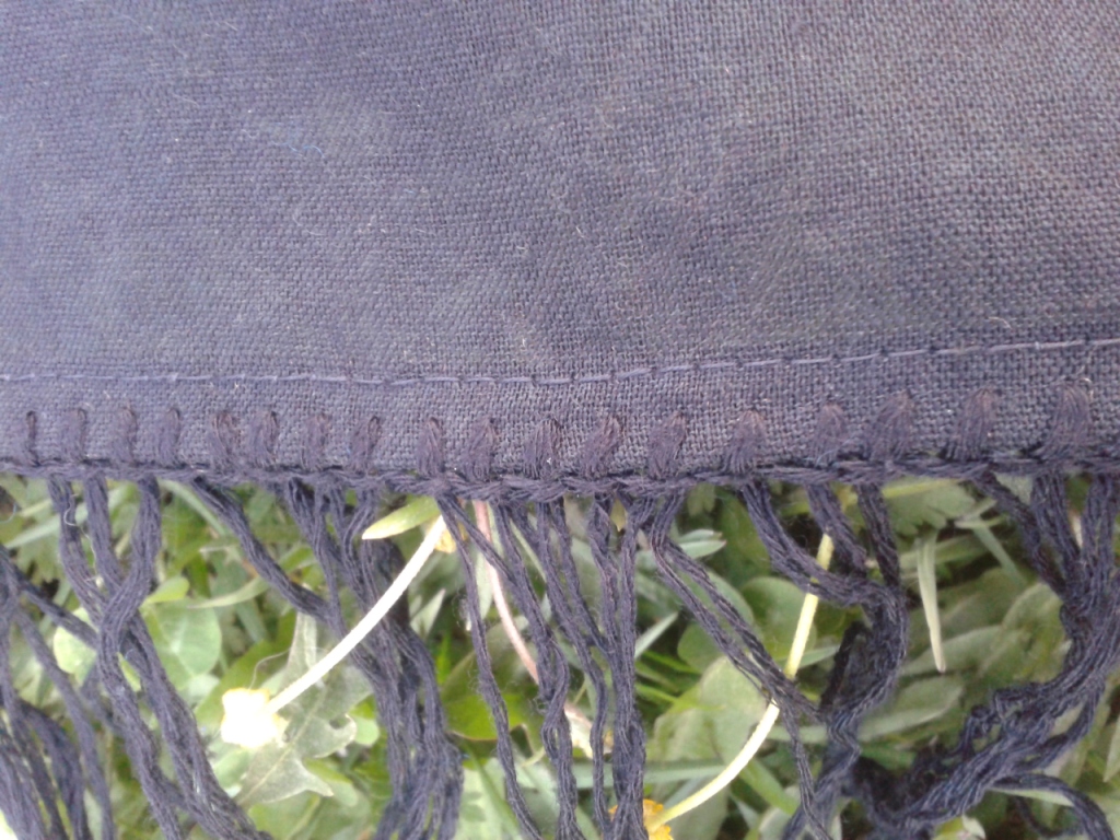Размер примерно 140х140 (измерить нечем было), бахрома хлопок. Сама шаль, вроде, шерсть, но тонкая, полупрозрачная. Прошу прощения за качество фото (с телефона).