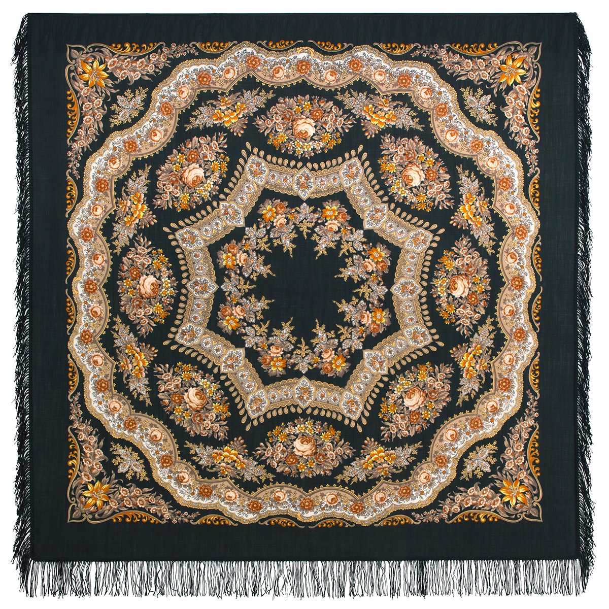 Шаль 150х150 с крупными букетами по углам и ажурным веночком из листьев каштана в среднике