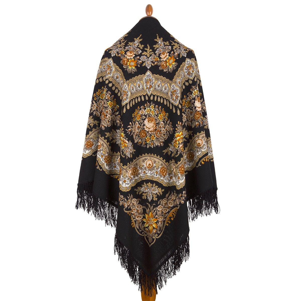 Шаль 150х150 с крупными букетами по углам и ажурным веночком из листьев каштана в среднике