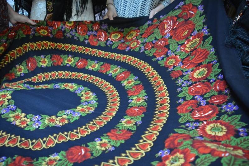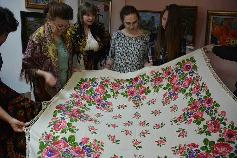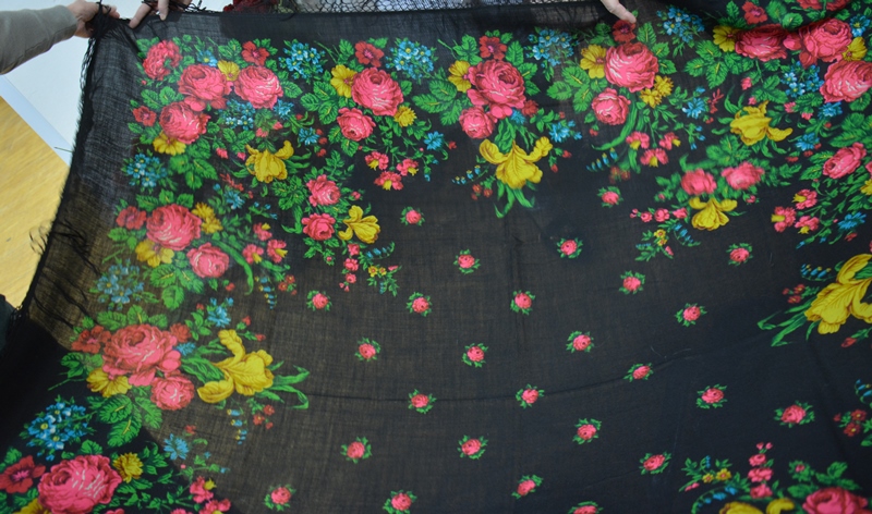 Про хлопковые шали Ирина Петровна сказала, что они Городковские, а там работали Рыжов, Слащева и Зиновьева, поэтому об авторстве рисунков на хлопке она ничего сказать не может.
