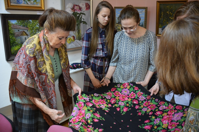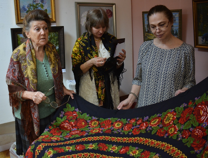 Про хлопковые шали Ирина Петровна сказала, что они Городковские, а там работали Рыжов, Слащева и Зиновьева, поэтому об авторстве рисунков на хлопке она ничего сказать не может.