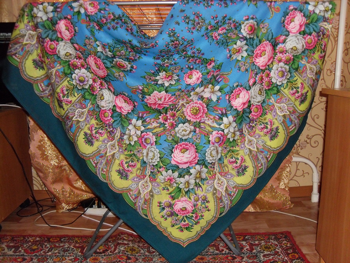 Бегала в магазин ППМ во время обеденного перерыва, посмотреть платочки. Буквально влюбилась в Лукоморье 9 , но смутили меня его желтенькие медальончики (если честно очень красивый желтый цвет, мне нравится, но мне говорят что не идет такой) и зеленая бахрома тоже не на мой вкус, а вот все остальное: голубой фон, цветочки все просто прелесть, когда прикинула на себя словно в сказку попала. В тот день я ушла с другим платком... но лукоморье не давало покоя, в итоге взяла в лоскуте чтоб не накладно и посмотреть получше как он мне покрутить его(Кликните, чтобы почитать, что спрятано под катом)... теперь все-таки хочу купить 1 сорт потому что с бахромой мне платочки нравятся больше, а лоскут пойдет на зиму под шубку