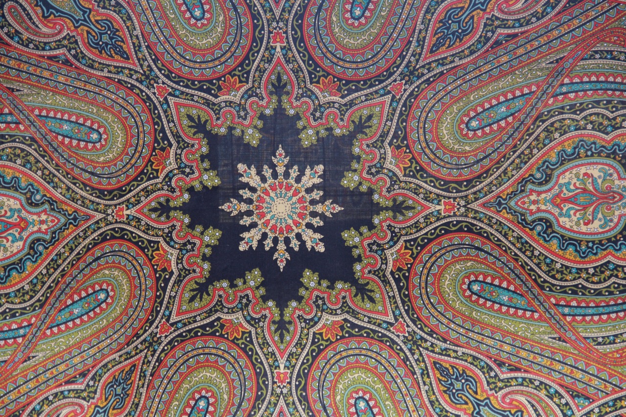 Я узнавала, что раньше на платках изображали только садовые цветы. И орнамент "Сказки" тоже в этом же стиле.