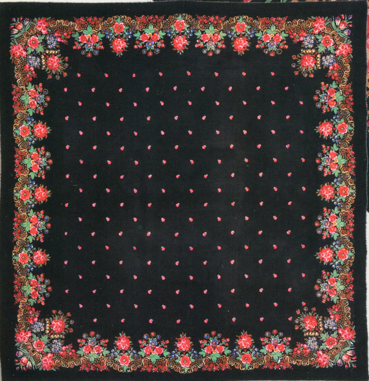 Шаль стариная с орнаментально-цветочным узором и "снежинкой" в среднике. 1890 год.