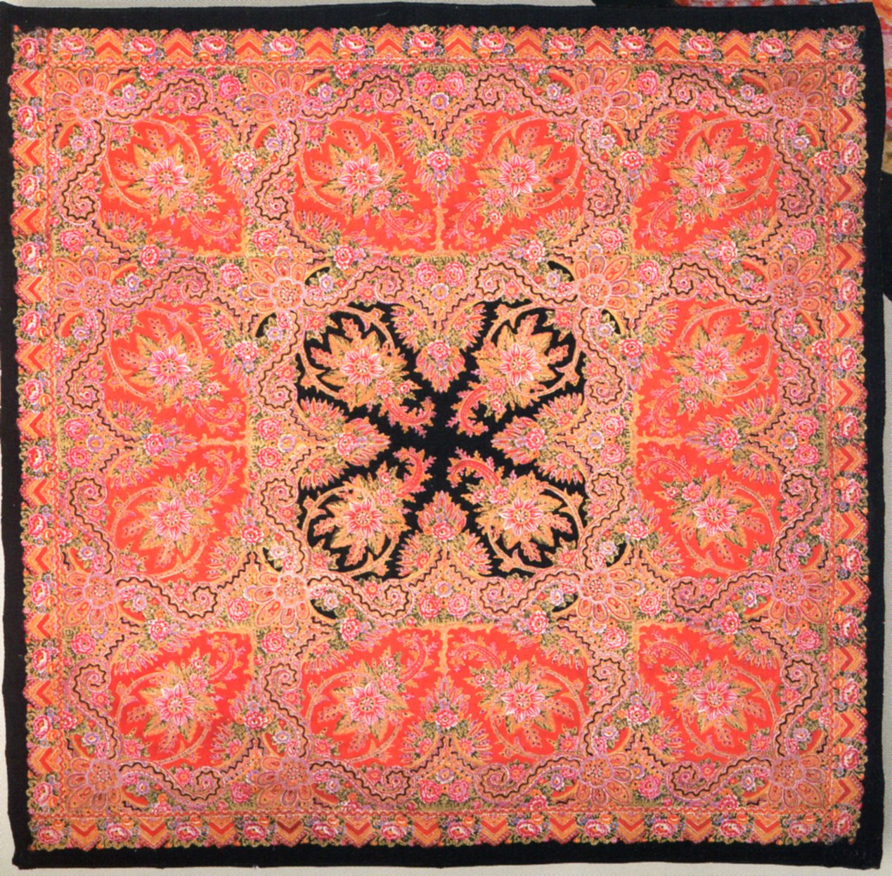 Шаль стариная с орнаментально-цветочным узором и "снежинкой" в среднике. 1890 год.