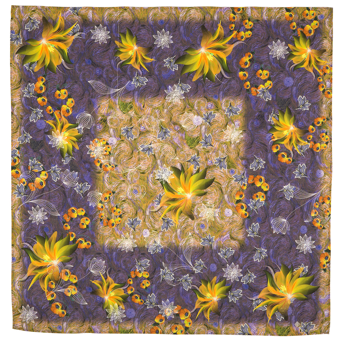 Платок шелковый (атлас) "10199" вид 12, 89x89 см
