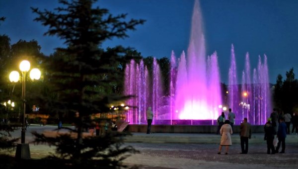 Поющий фонтан, открытый ко Дню города поет под музыку Вивальди.