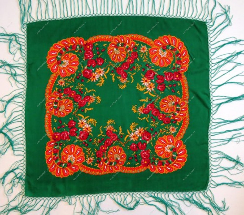 «В стране существует множество видов шалей и платков, отличающихся по материалу, расцветке, орнаменту. В 1880-е годы платки национального производства не выдержали конкуренции с австрийскими, которые делались с однотипными узорами в нескольких вариантах — красном, зеленом, желтом.