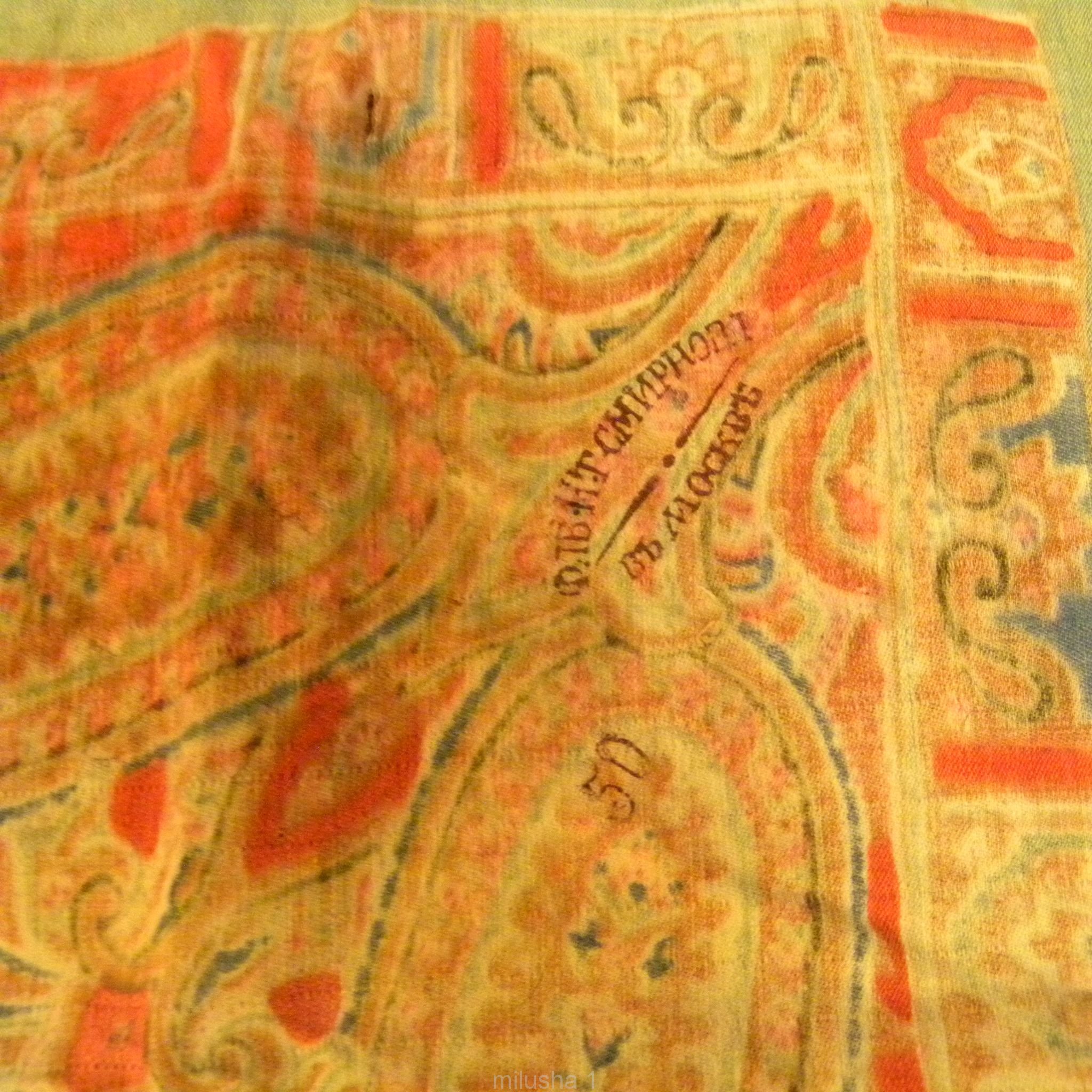 Шаль старинная с орнаментом из стилизованных "листьев" по кайме со вписанными в них розочками.