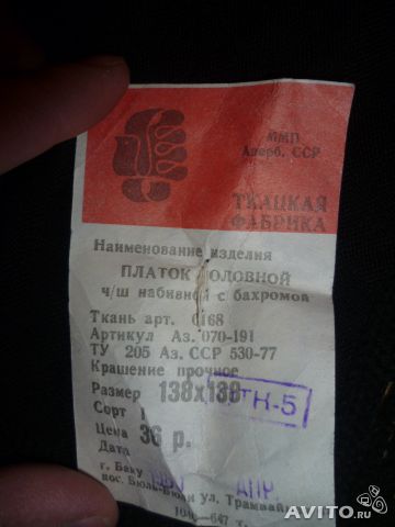 АЗЕРБАЙДЖАН. Бакинская ткацкая фабрика. 1980. Этикетка