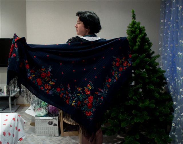 Демонстрируем ношение платков и шалей.