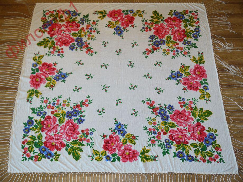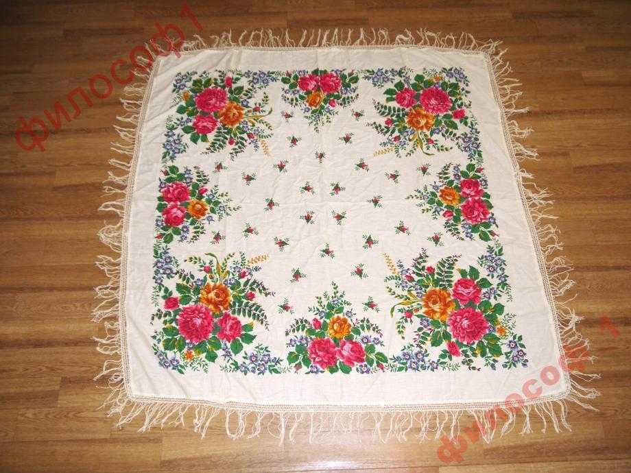 Фото этого платка (БС 902, к.2, "Букет с геранью" Е.Регуновой) много в этой теме, но с нашими Дуняшей и Митрофанушкой нет)) Новенький платок, с этикеточкой бумажной.