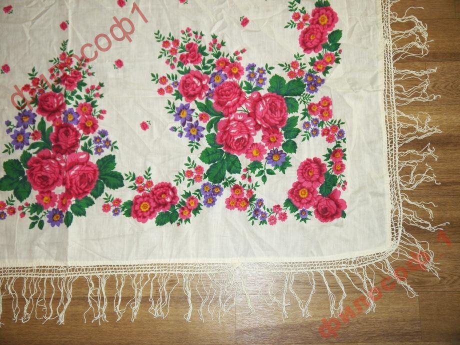 Фото этого платка (БС 902, к.2, "Букет с геранью" Е.Регуновой) много в этой теме, но с нашими Дуняшей и Митрофанушкой нет)) Новенький платок, с этикеточкой бумажной.