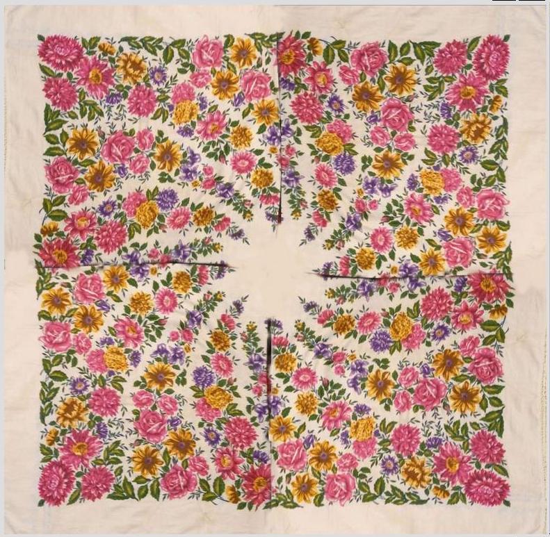 Шаль с угловыми гирляндами, букетами и ситцевым средником. Автор Семён Рыжов