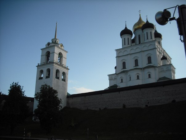 Свято-Троицкий Кафедральный Собор-символ земли псковской. В 13 веке псковский князь Довмонт призывал:"Братья мужи,псковичи!Потягните за Святую Троицу,за свое Отечество".Основание собора приписывают равноапостольной княгине Ольге. Около стен собора на площади собиралось вече,в архиве хранились важнейшие документы,в усыпальнице собора покоятся Святые и Архиереи Псковской земли.Нынешний собор является четвертым по счету,построен в 1699 году,а в 1935 был закрыт,в нем был антирелигиозный музей. Интересно, что во времена немцкой оккупации 1941-1944 годах собор снова был открыт и уже не закрывался. Собор-самое высокое здание Пскова и доминирует в архитектуре города,в ясную погоду главы собора видны за несколько километров от города.