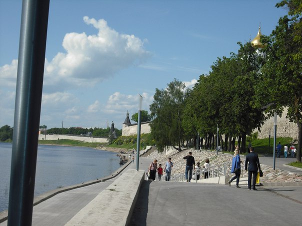 Как уже было сказано выше,за рекой Псковой,находится район города,который называется Запсковьем. А за рекой Великой-находится Завеличье.