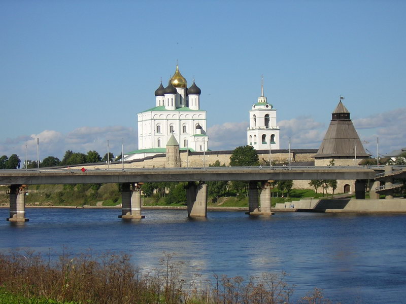 А сейчас мы отправимся в Завеличье. Завеличье-это район Пскова за рекой Великой.Попасть туда можно,если перейти Ольгинский мост.Если выйти с главного входа Кремля и пройти вперед,то можно выйти на Ольгинскую набережную.